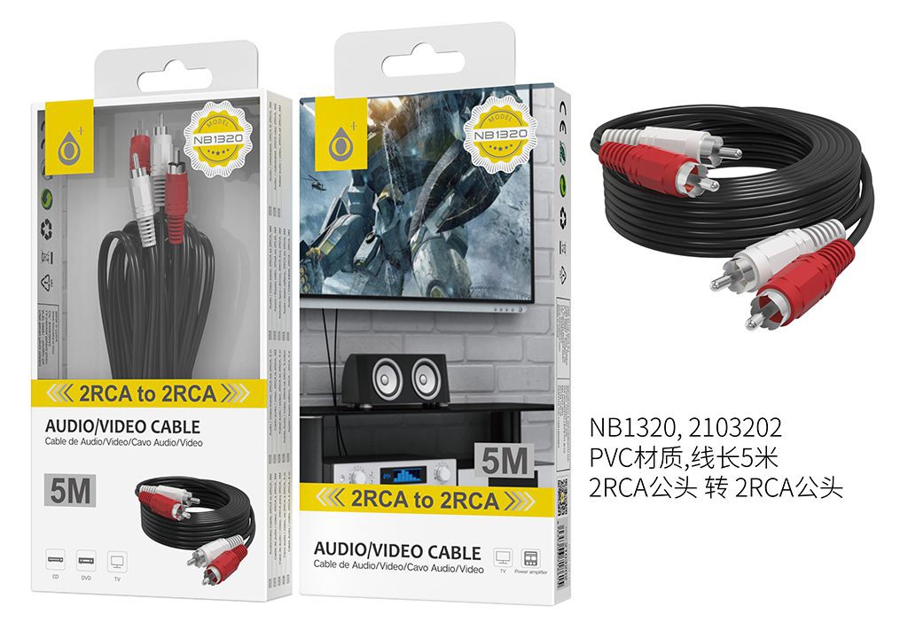 NB1320 NE Cable Audio 2RCA a 2RCA 5M , Negro
