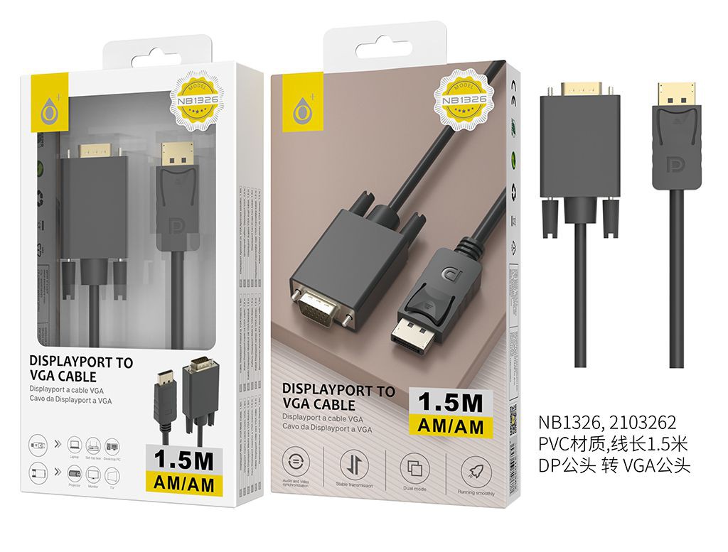 NB1326 NE Cable de DP a VGA 1.5M,Negro