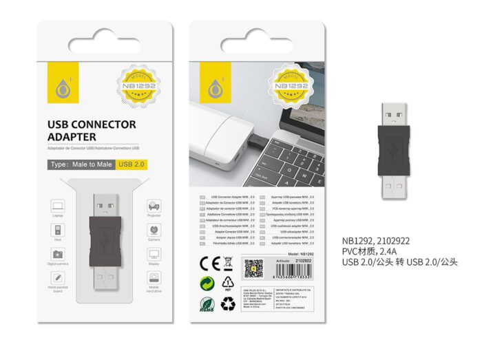 • NB1293 NE Adaptador de USB Hembra a Hembra ,Negro