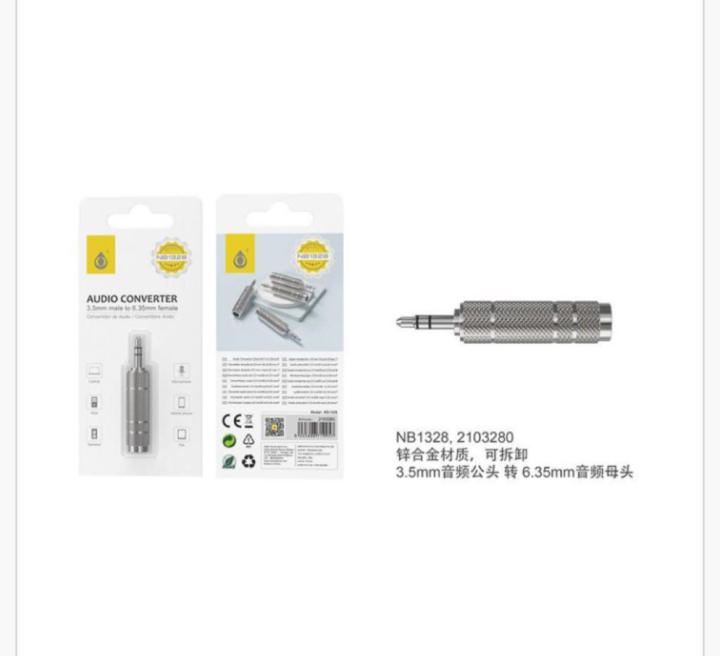 NB1328 Adaptador Audio Jack3.35mm a  6.35mm (Macho a Hembra),Plata