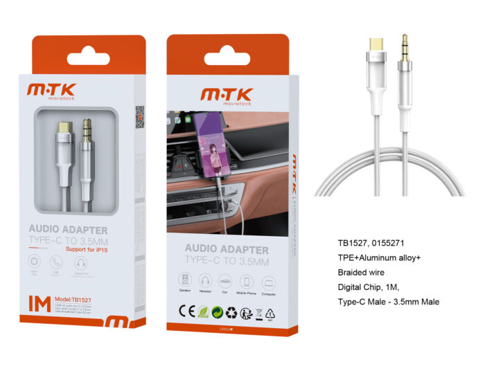• NB1473 BL Adaptador de Audio Type-C (Macho) a 3.5mm (Hembra), Con decodificador digital, Soporta musica y llamada, Blanco