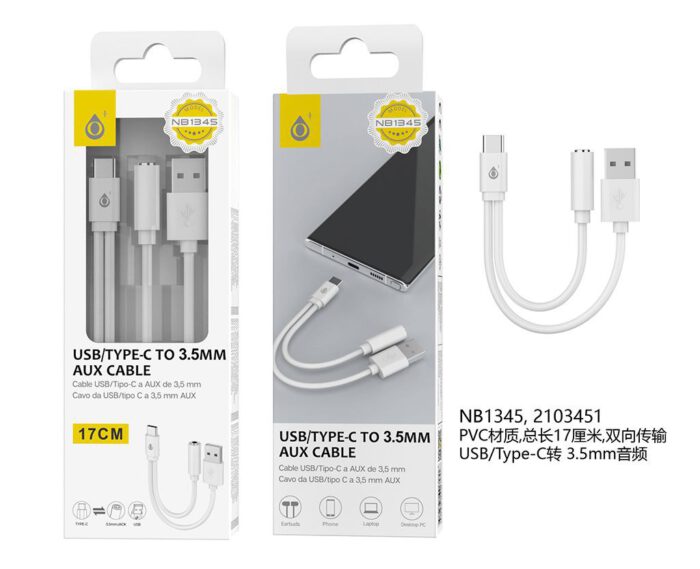 NB1345 BL Cable Type-C Dual de Audio y Datos ?17CM ?Blanco