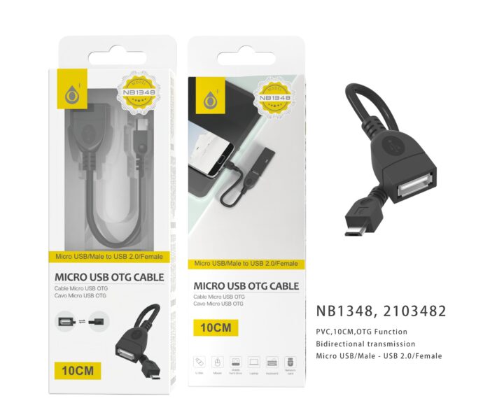 NB1348 NE CABLE OTG MICRO USB Macho a USB 2.0 Hembra,Cable 10cm,NEGRO