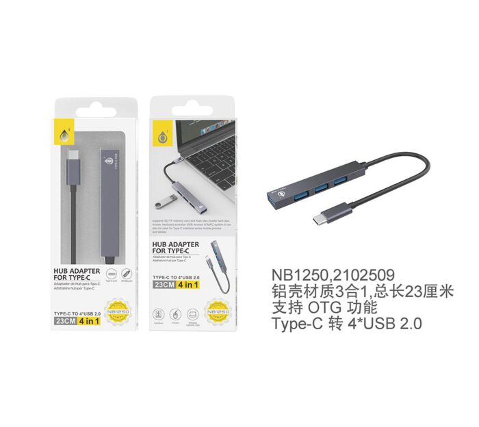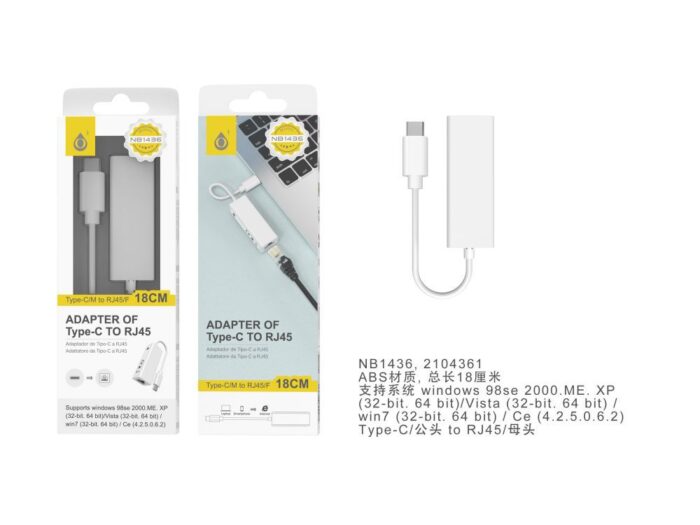 • TR9174 BL Cable de Adaptador Type-C/USB 2.0 Con HUB x3 + Entrada Red RJ45, Blanco