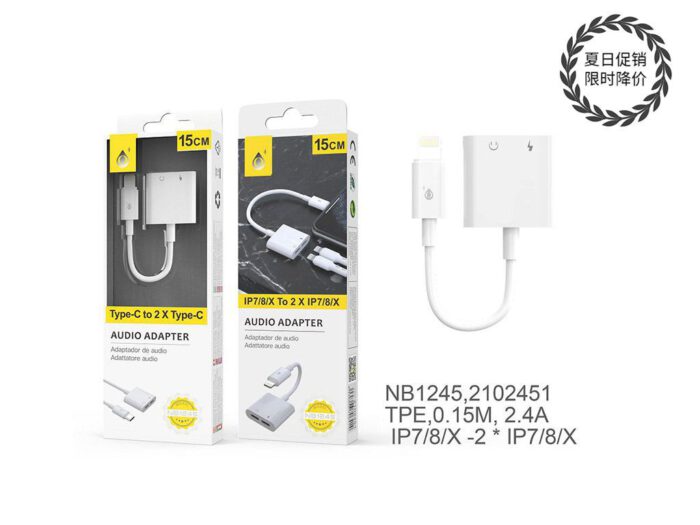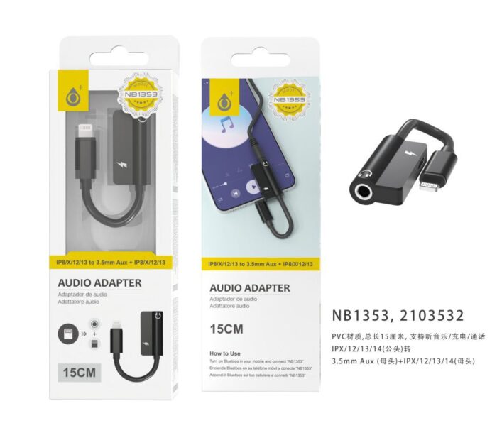 NB1362 NE Adaptador de Audio y Carga  de Iphone 5-14 , Negro