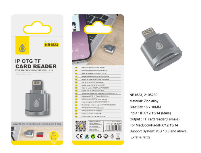 • NB1523 PT Adaptador OTG Zinc alloy Lightning (Macho) a Tarjeta TF(Hembra), Plata