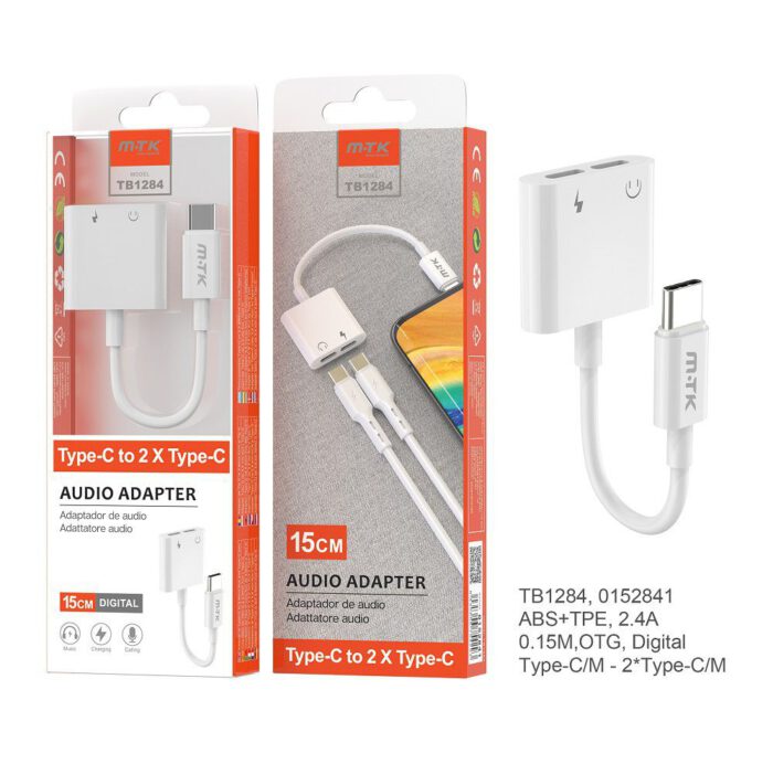 • BL NB1244 Cable Adaptador Audio Type C a 3,5mm Audio, M-M, con Microfono, Control de volumen y Boton multifuncion, 1M, Blanco
