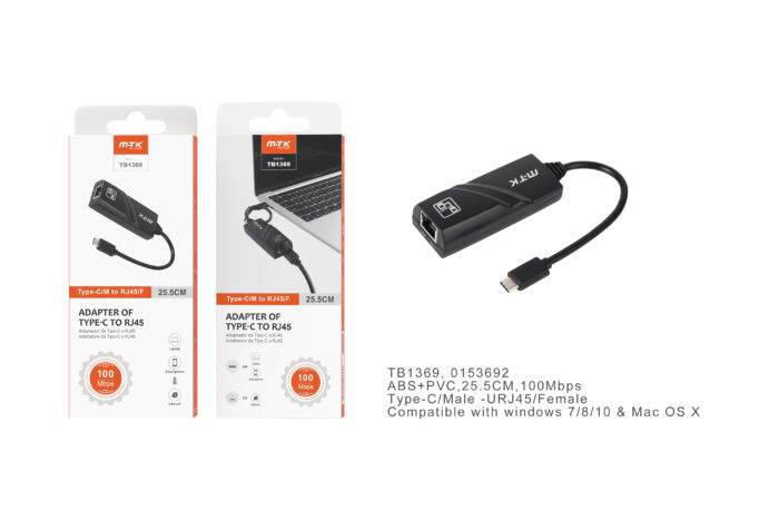 • NB1436 BL Cable de Adaptador Type-C (Macho) a Entrada Red RJ45(Hembra), Cable 18cm, Blanco