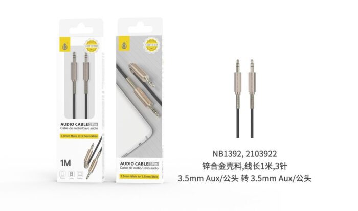NB1392 NE+OR Cable de Zinc audio 3.5mm Macho a Macho, Cable 1m, Negro+Oro