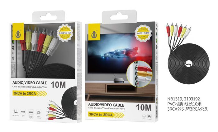 • NB1319 NE Cable Audio 3RCA a 3RCA 10M , Negro