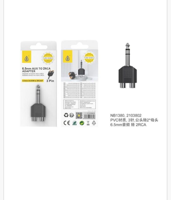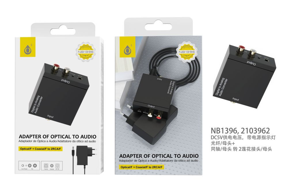 NB1396 NE Adaptador de Cable Optica a 2 RCA , 3.5mm jack, Negro
