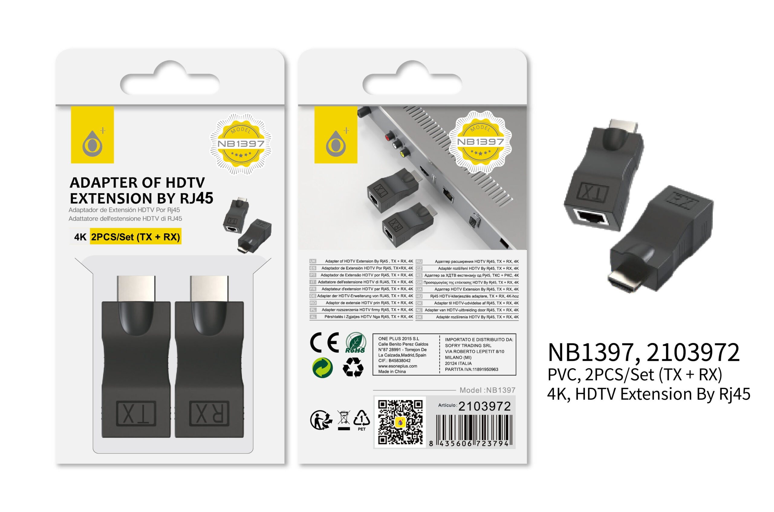 NB1397 NE Extensor de HDMI a RJ45 4K, Con transmisor y Receptor,Negro