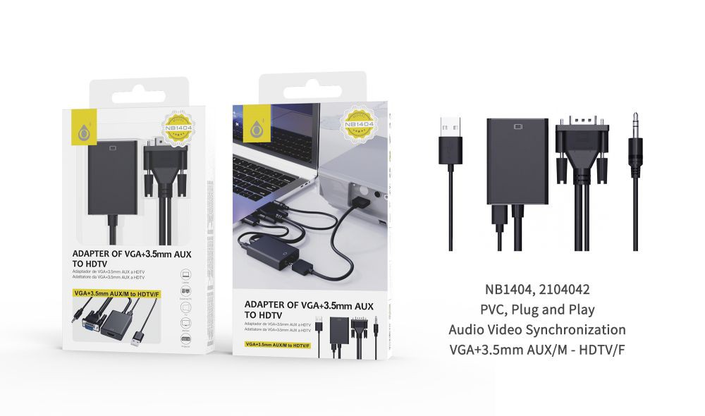 NB1404 NE Adaptador VGA+Audio 3.5mm a HDMI Hembra ,Negro