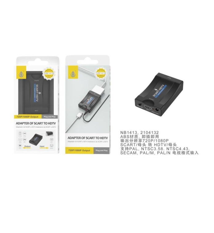 NB1413 NE Adaptador de HDMI (Hembra) a Scart (Hembra), 1080p, Admite formatos de entrada PAL, NTS3.58, 4.43, SECAM, PAL/M, PAL/N, Negro