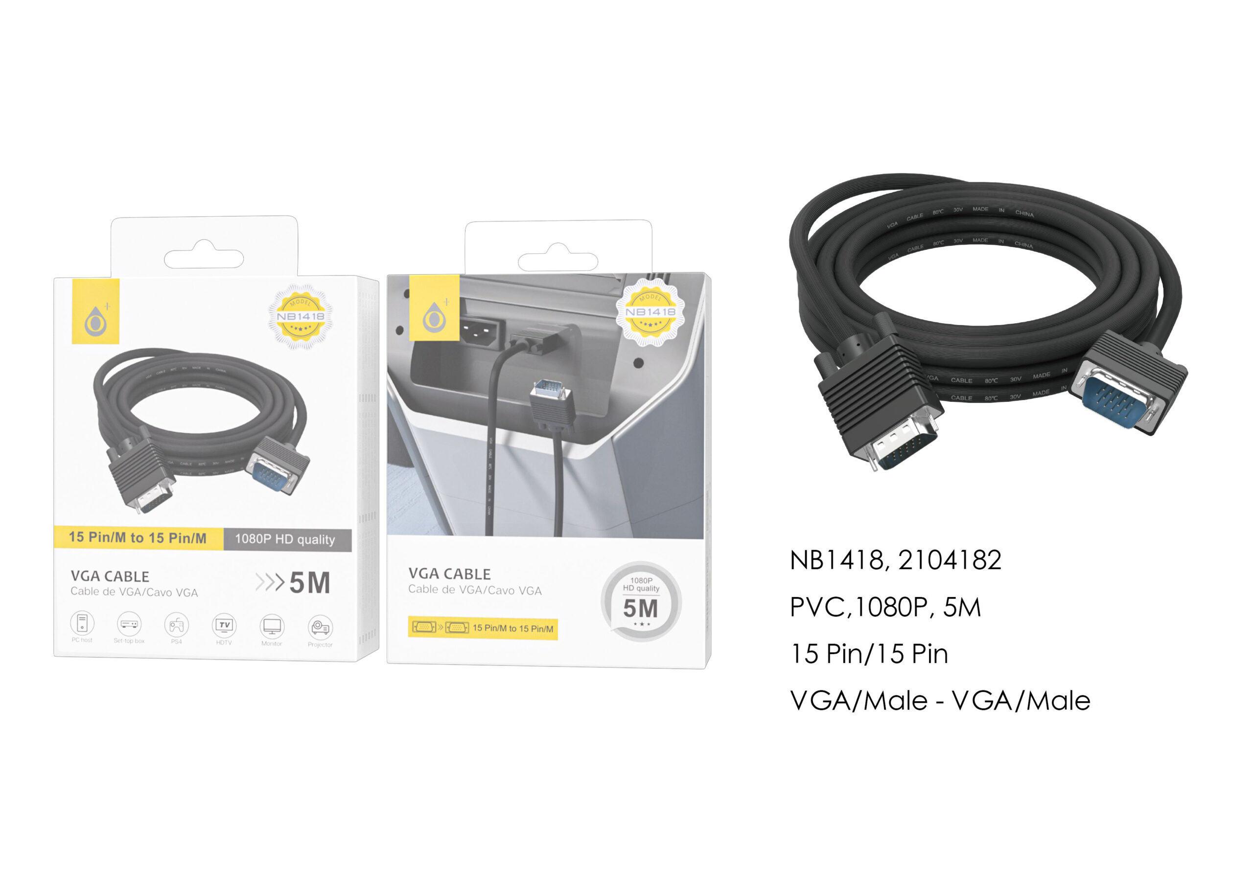 NB1418 NE Cable VGA (Macho-Macho)1080P,Cable 5m,Negro