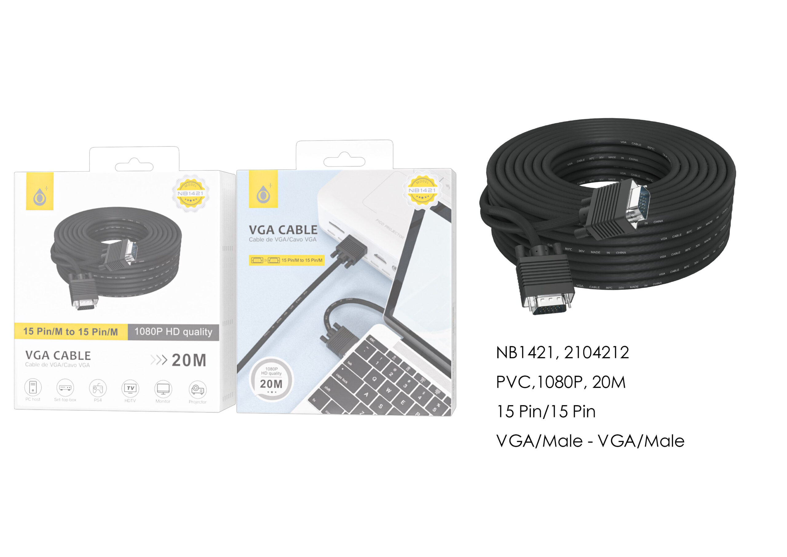 NB1421 NE Cable VGA (Macho-Macho)1080P,Cable 20m,Negro