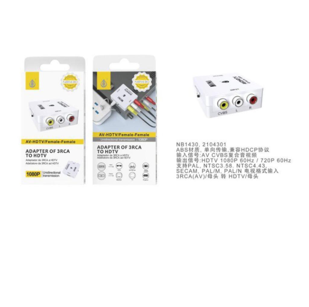 NB1430 BL Adaptador de 3RCA a HDTV(Hembra-Hembra)1080p, Blanco