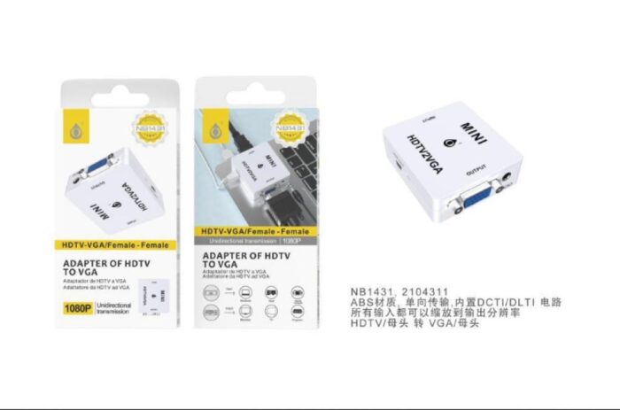 • NB1467 BL Adaptador de 3 RCA a VGA 1080p/60Hz(Hembra-Hembra),transmision unidireccional, Admite formatos PAL/M/N,NTSC3.58/4.43,SECAM , Blanco