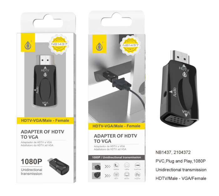 NB1437 NE Adaptador HDMI (Macho) a VGA (Hembra)1080P, transmision unidirecciona, Negro