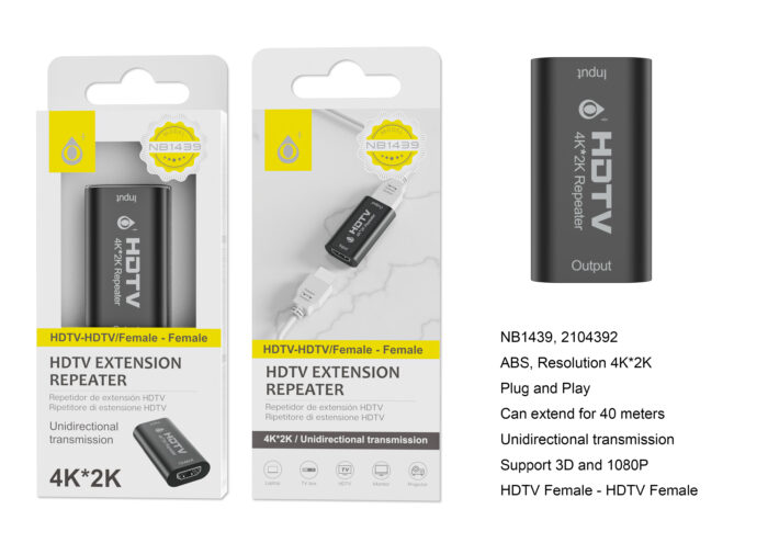 NB1439 NE Repetidor de HDMI (Hembra a Hembra), transmision unidirecciona, Soporta 3D/4K*2K(Max 40 Metro), Negro