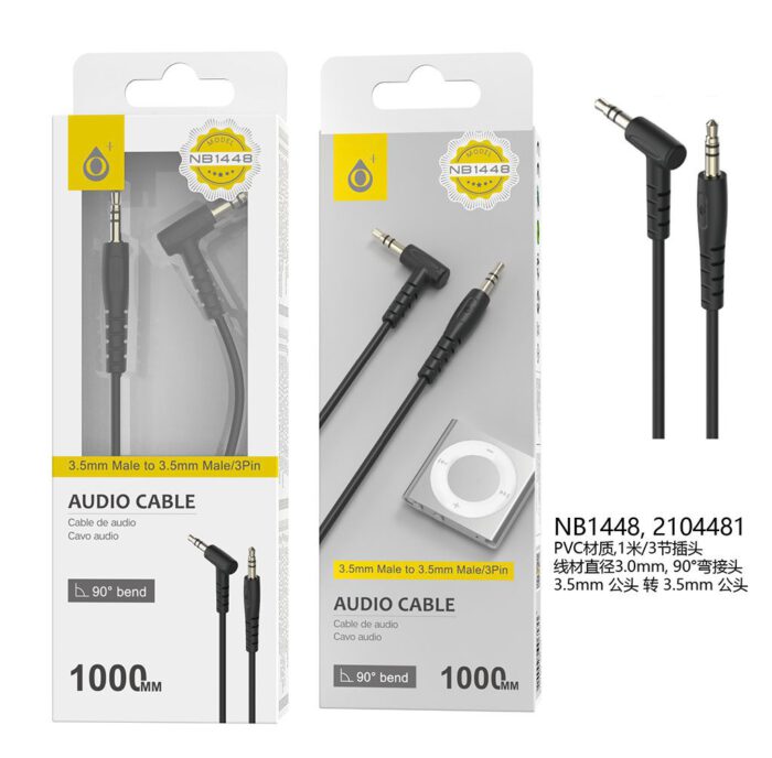 NB1448 NE Cable de Audio en L 90° ,1M, Negro