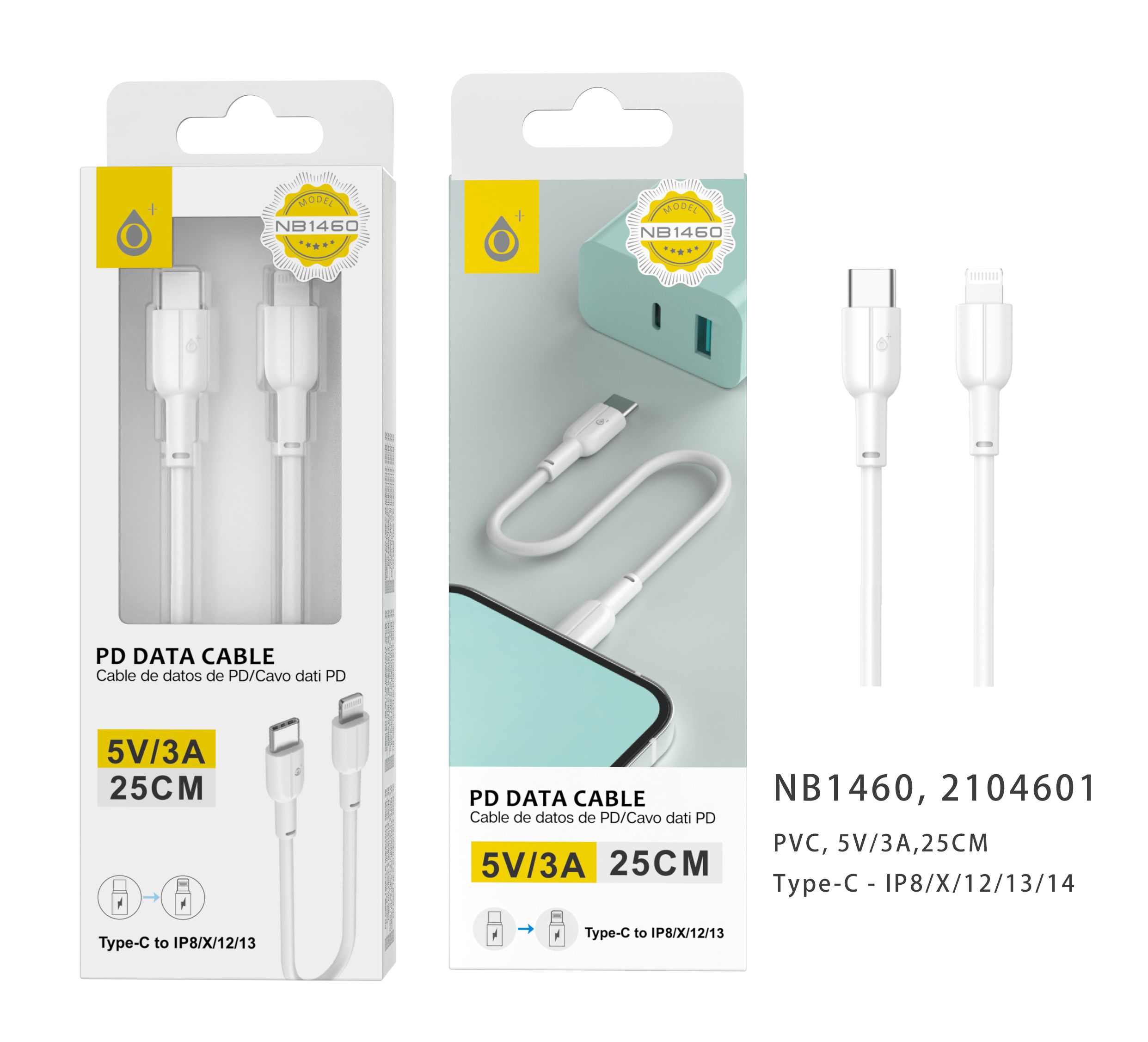 NB1460 BL Cable de Datos PD Type C a Lightning , 5V/3A, Cable 24cm, Blanco