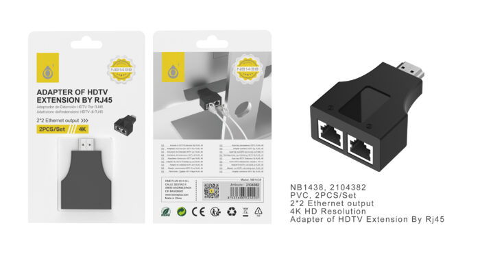 • NB1438 NE Adaptador HDMI a 2*RJ45 4K 2pcs, Negro
