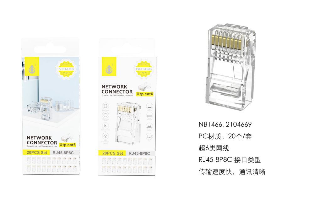 NB1466 Conectores RJ45 8P8C(Cat6) para Ethernet 20pcs