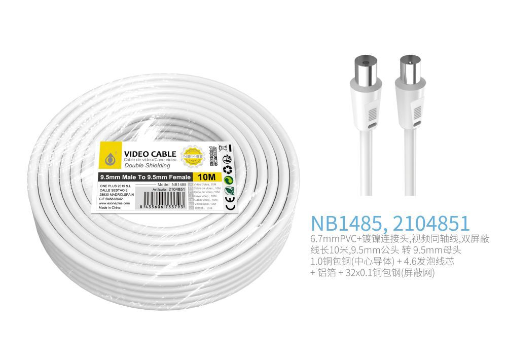NB1485 Cable de Video(Coaxial)Conector banado en niquel 9.5mm Macho a Hembra , doble blindaje, 10 Metro, Blanco