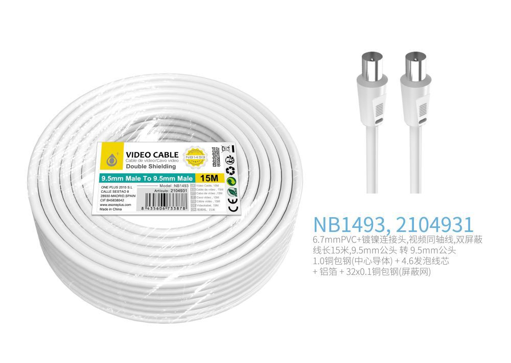 NB1493 Cable de Video(Coaxial)Conector banado en niquel 9.5mm Macho a Macho , doble blindaje, 15 Metro, Blanco