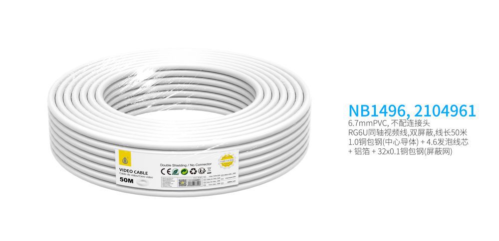 NB1496 Cable de Video(Coaxial RG6U) Sin Conector, doble blindaje, 50 Metro, Blanco