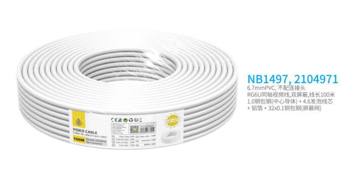 • NB1496 Cable de Video(Coaxial RG6U) Sin Conector, doble blindaje, 50 Metro, Blanco