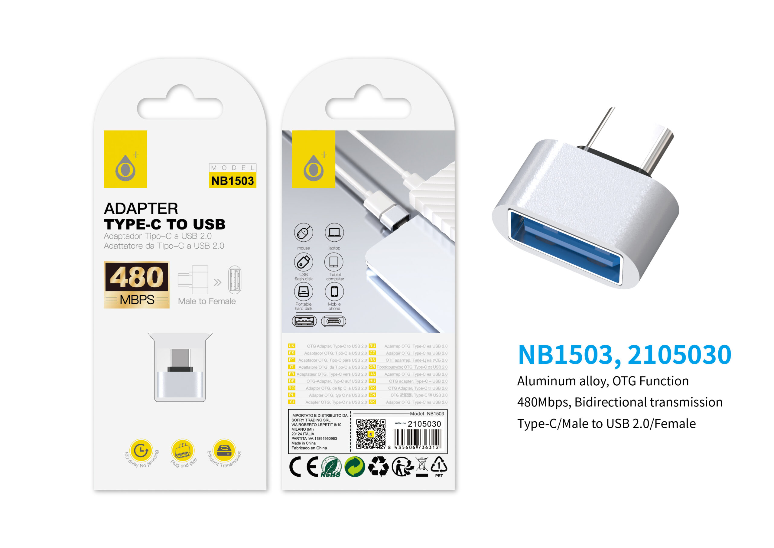 NB1503 PT Adaptador OTG USB A Type-C , 480Mbps, Plata