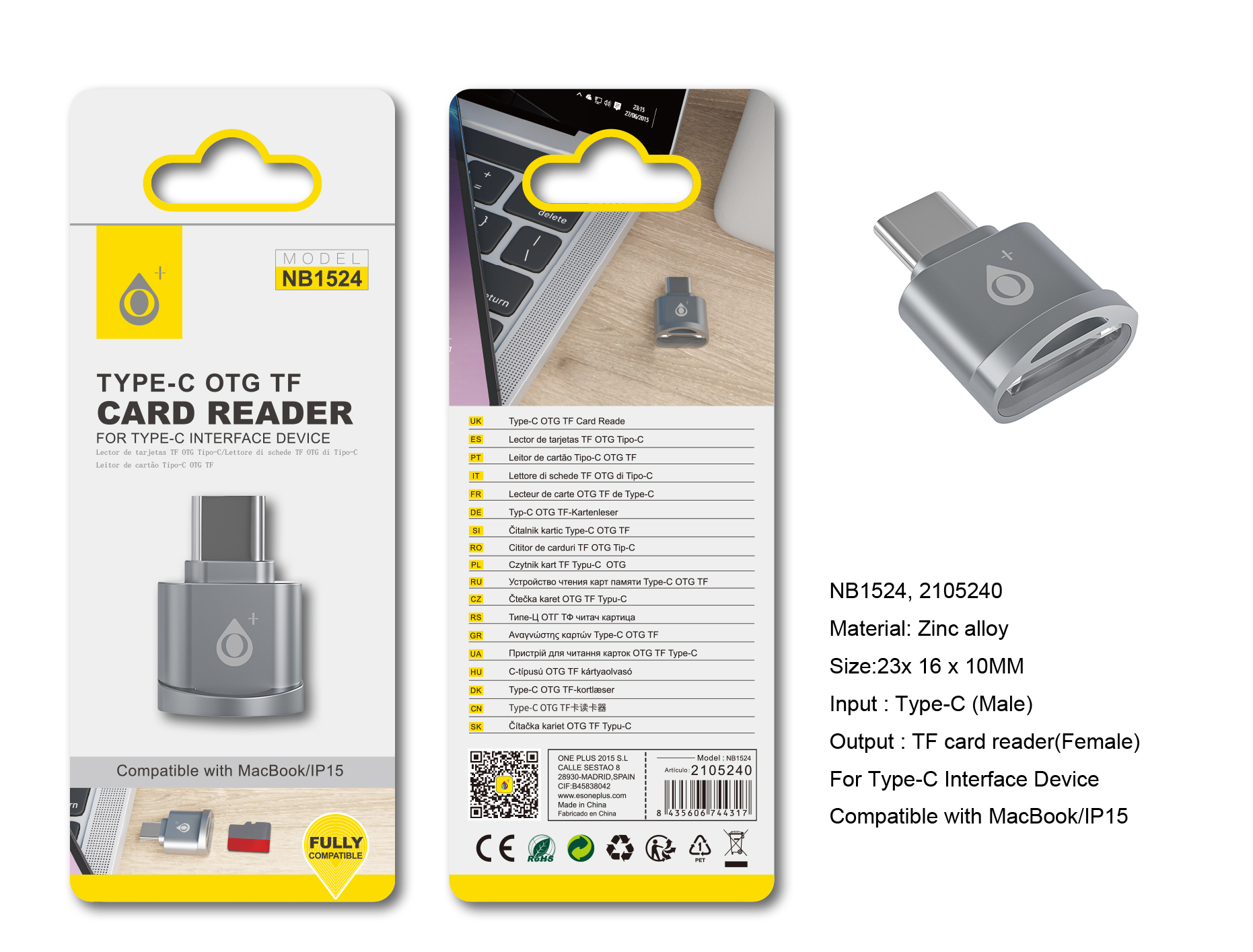 NB1524 PT Adaptador OTG  Zinc alloy Type-C (Macho) a Tarjeta TF (Hembra) , Plata