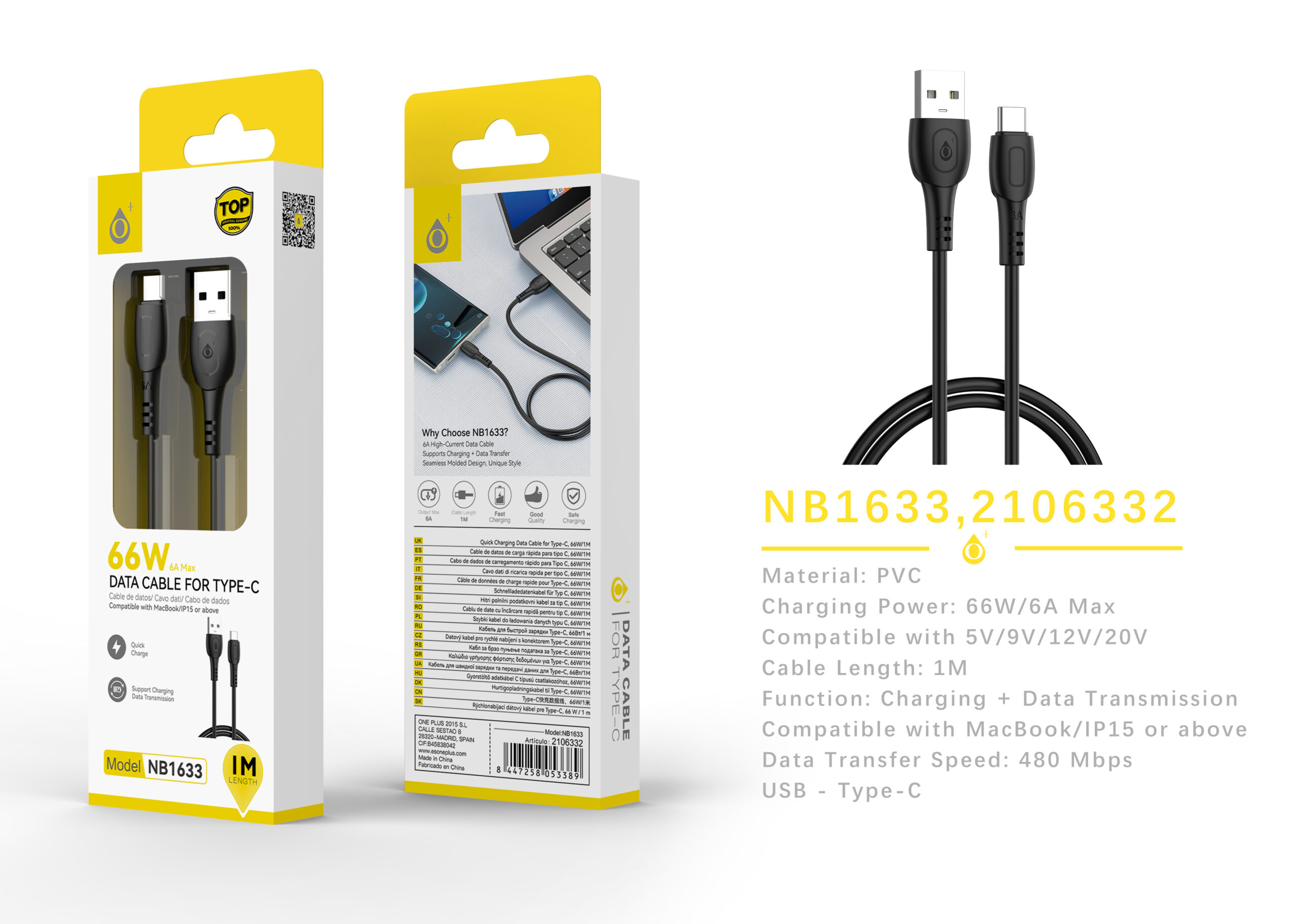 NB1633 NE Cable de Datos Felo Type-C, Carga rapida 66W/6A, Cable 1M, Negro