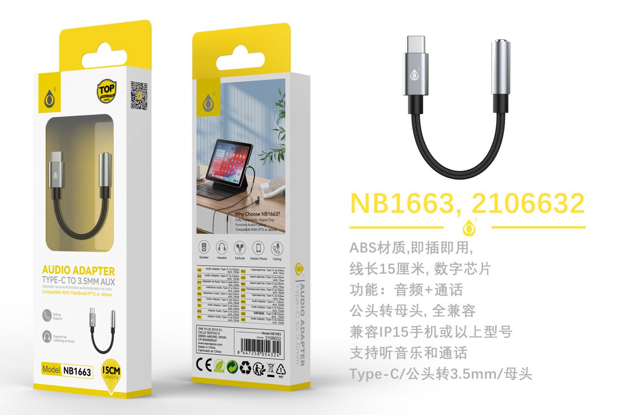 NB1663 Adaptador de audio Digital Type-C a 3.5mm, Soporta llamada y Musica, 15CM