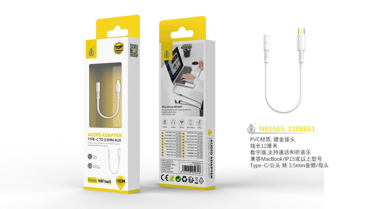 NB1665 Adaptador de audio digital, Type-C a Jack 3.5mm, Soporta llamada y Musica, 12CM, Blanco