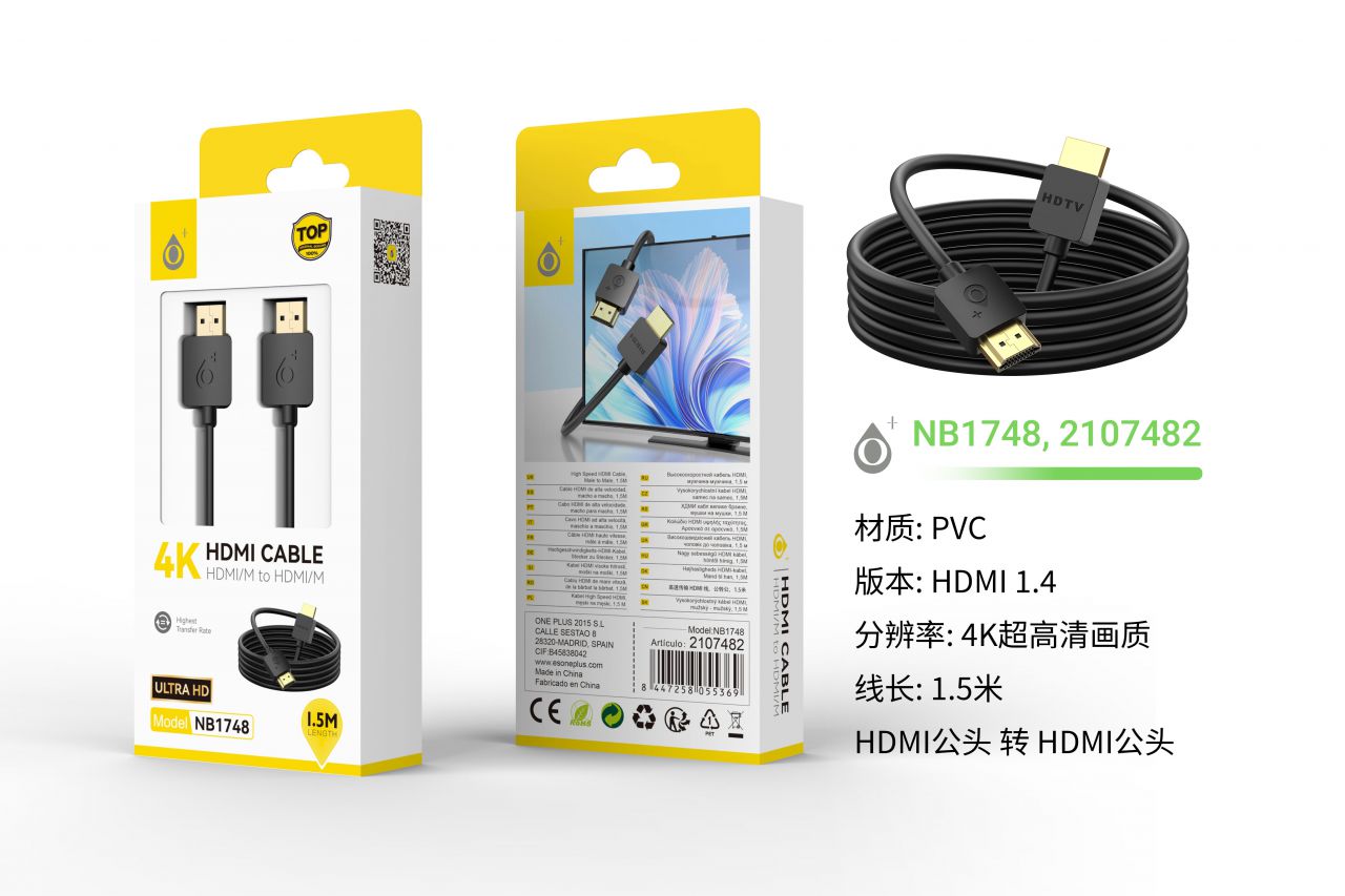 NB1748 NE Cable de HDMI 4K 1080P, Cable 1.5M, Negro