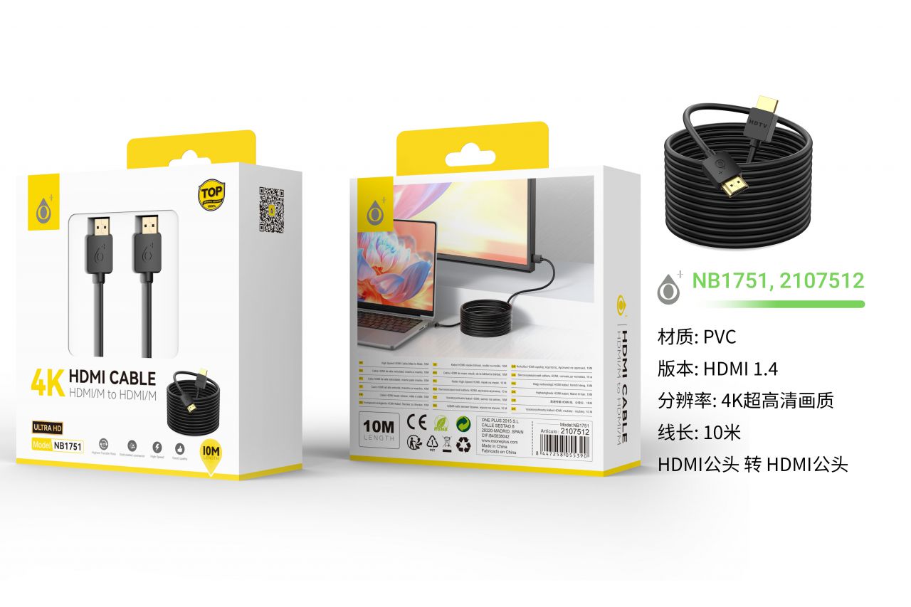 NB1751 NE Cable de HDMI 4K 1080P,  Cable 10M, Negro