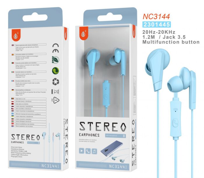 NC3144 AZ Auriculares Tristina con Microfono y Boton Multifunciones, Longitud 1,2M, Azul