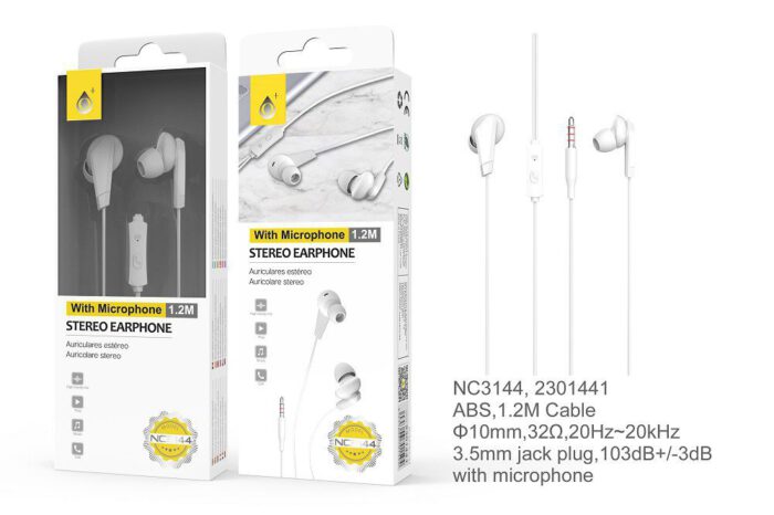 NC3144 BL Auriculares Tristina con Microfono y Boton Multifunciones, Longitud 1,2M, Blanco