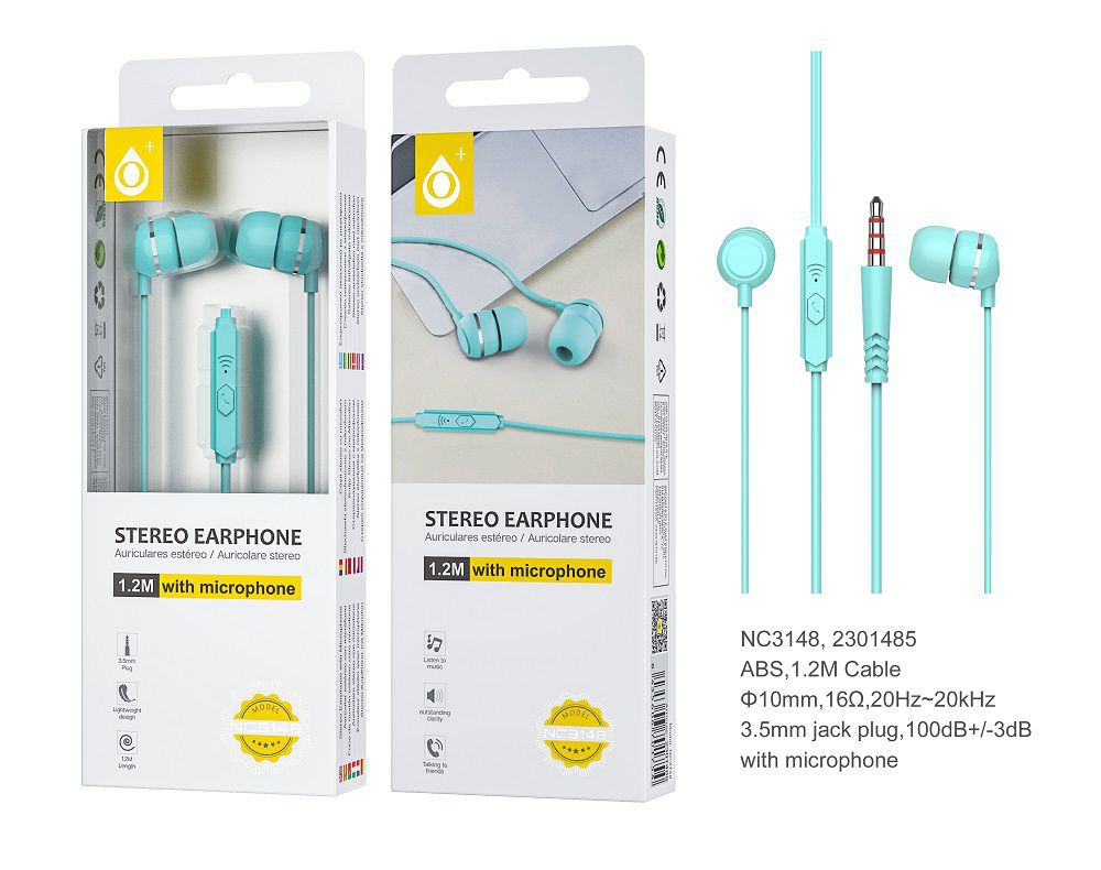 NC3148 AZ Auriculares Buzzz con Microfono y Boton multifunciones, Longitud 1.2M, Azul