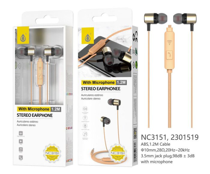 NC3151 OR Auriculares Ring con Microfono y Boton multifunciones, Longitud 1,2M, Oro