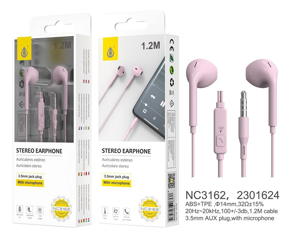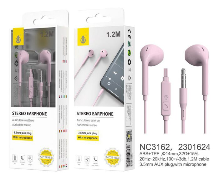 NC3162 RS Auriculares Speedy con Microfono y Boton Multifuncion, 1.2M,Rosa