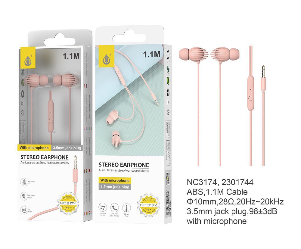 NC3174 RS Auriculares con Microfono Deluca, Con Boton Multifuncion y Control de Volumen, Longitud 1.1M,Rosa
