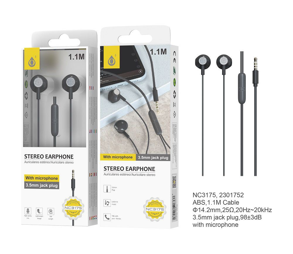 NC3175 NE Auriculares con Microfono Beta, Con Boton Multifuncion y Control de Volumen, Longitud  1.1M, Negro