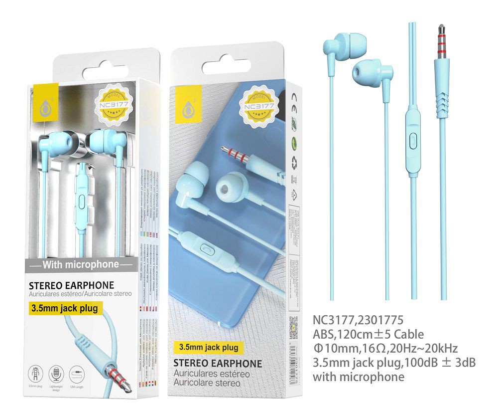 NC3177 AZ Auriculares con Microfono Grimes, Con Boton Multifuncion y Control de Volumen, Longitud 1.2M,Azul