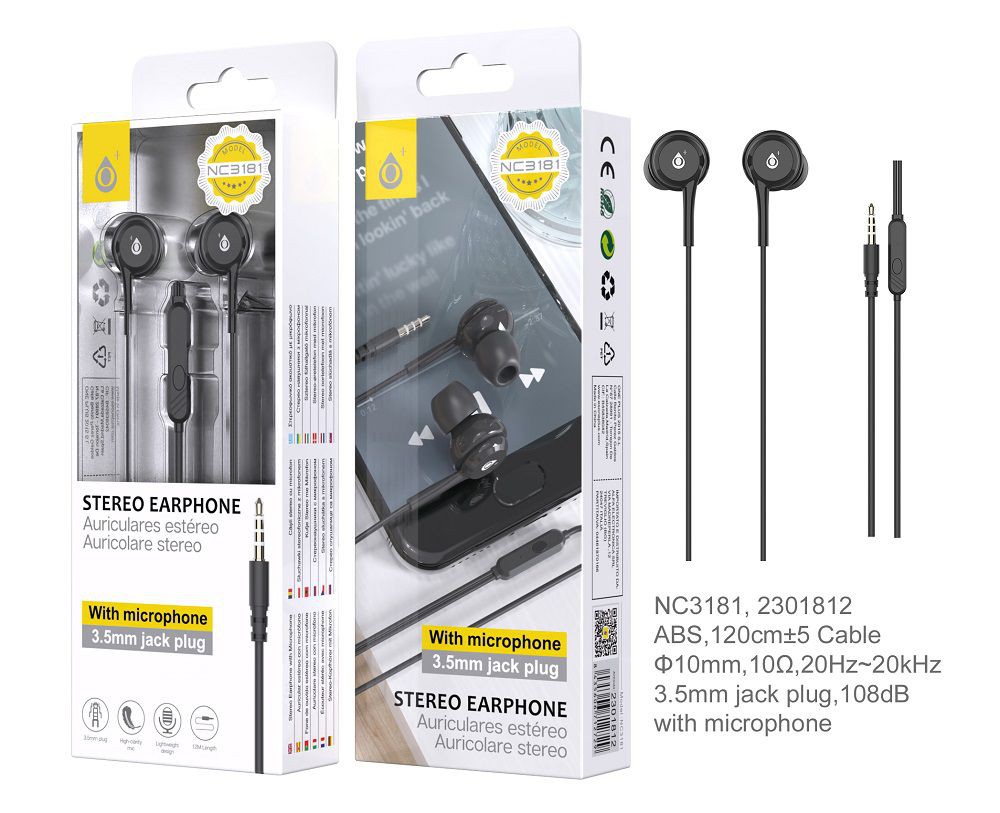 NC3181 NE Auriculares con Microfono Circle,Boton Multifuncion y Control Volumen, Longitud  1.2M,Negro
