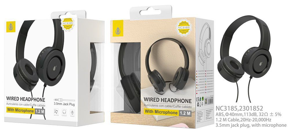 NC3185 NE Auriculares Cascos Pring con Cable 1,2M y Microfono, 3.5mm Jack Plug, Negro
