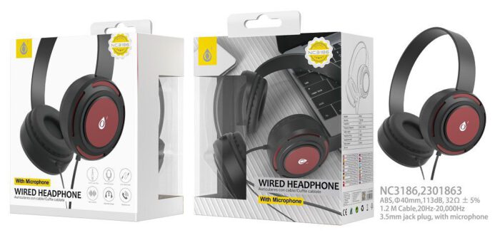 NC3186 RJ Auriculares Casco Travi con Cable y Microfono, 3.5mm Jack Plug, Diseno Ajustable, Diametro 44mm, 1.2M, Rojo